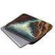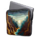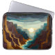 Uma bela paisagem de um canyon com um rio em tons negros de marrom, bronzeado, azul, ciano, ouro e bege.