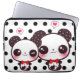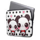 Proteja seu laptop com esta luva bonito e durável super. Há 3 tamanhos disponíveis para que você escolha. Características deste design 2 pandas do kawaii com arcos vermelhos em bolinhas pretas.