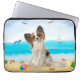 Capa Para Notebook Papillon Dog na Praia