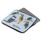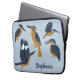 Crie um acessório personalizado de computador que faz um presente perfeito para amantes de pássaros. Esta bolsa de laptop apresenta ilustrações dos pescadores do marinho em azul-mostarda, ouro-mostarda e conjunto branco sobre um fundo azul-claro e está pronto para ser personalizado com um nome na inscrição do script azul-marinho.