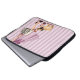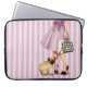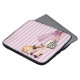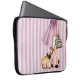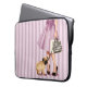Senhora à moda com o filhote de cachorro bonito de passeio do pug dos sacos de compras elegantes no fundo stripy roxo. Pintado pelo artista Maryline Cazenave.