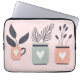 Capa Para Notebook Pastel, rosa e cinzas, plantas modernas potes