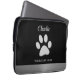 Capa Para Notebook Pata de Cachorro de Prata sobre fundo preto