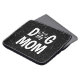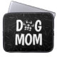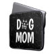 Pêlos brancos e pílulas de cão com texto de "mãe de cão" em padrão de xadrez de búfalo preto e branco em fundo preto. A cor de fundo pode ser alterada.