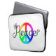 Design da tipografia do sinal de paz do arco-íris com borboletas e redemoinhos da cor.