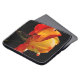 Fotografia vibrante, cor de laranja-rosa, em forte contraste com um cenário preto dramático.