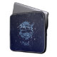 Bolsa de laptop com o símbolo de Peixes em azul-prateado suave, sobreposta com as estrelas da constelação, sobre um fundo do céu estrelado formando de azul-da-meia-noite a preto