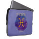 Ilustração azul de aquarela púrpura com o sinal laranja do zodíaco para Peixes (peixes) e a constelação estelar correspondente em ouro sobre fundo peri (muito peri). Adicione seu nome à bolsa de laptop e torne-o exclusivamente seu. Sinta-se livre para alterar a fonte, o tamanho da fonte e a cor. Esta bolsa de laptop também fará um maravilhoso presente de aniversário para um amado, amigo ou colega de trabalho.