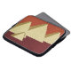 Imagem impressa no saco de eletrônicos é de uma foto de uma tapeçaria original na parede de crochê pendurada desenhada à mão e Copyright © pelo designer publicado Delores Chamblin. A imagem da única criação feita à mão com as pirâmides geométricas egípcias em cores naturais de tons de terra quente é reproduzida em viagem.