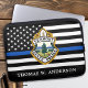 Bolsa de laptop do Departamento de Polícia da Linha Azul - bandeira americana em cores de bandeira policial, design azul e preto moderno. Personalize com o logotipo do seu departamento e personalize com o nome dos policiais. Esta bolsa de laptop personalizada é perfeita para departamentos de polícia e polícias. COPYRIGHT © 2020 Judy Burrows, Black Dog Art - Todos Os Direitos Reservados. Polícia personalizada de logotipo do Departamento de Polícia bolsa de laptop
