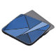 Inspirado pelo vidro colorido, este na moda geométrico contém polígonos em vários tons de azul esboçado em preto. Um triângulo azul claro desliza do canto superior direito com um conjunto de quadrangulares azuis progressivamente mais escuros e outras formas espiralando ao redor dele da luz para a escuridão. Duas formas azuis escuras movem o lado esquerdo do design original. Imagem criada digitalmente. Copyright © 2014 Claire E. Skinner. Todos os direitos reservados.