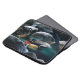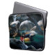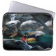 Dois patos de madeira num lago numa floresta. Árvores e rochas ao redor do lago enquanto os patos-de-madeira machos e fêmeas desfrutam do lago