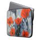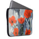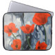 Este saco de laptop com papoilas vermelhas brilhantes em um fundo de cinza não seria uma entrada tímida para uma biblioteca, mas por que não acordar alguns leitores sonolentos? Quando eu estava pintando o fundo na cinza para contrastar com as papoilas brilhantes, eu pensei que se assemelhasse a um dia chuvoso. Então o título se tornou "Dia de Chuva no Compro Flor." Eu estava imaginando olhando para fora com chuva escorrendo pelas janelas. Bem, eu sei que as papoilas são selvagens, e não são encontradas num compro de flores, e eu definitivamente amo a natureza selvagem das papoilas soprando no vento. Então fingi que saí, cortei alguns e trouxe dentro neste dia chuvoso em particular.
