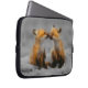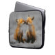 Duas raposas adoráveis do bebê que compartilham de um beijo doce. Coloração alaranjada macia em um fundo preto e branco.