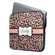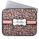 Uma bonito impressão de leopardo rosa e preto decora esta bolsa de laptop na moda. Personalize esta bolsa de laptop de estilo retroativo alterando o nome. O design é da arte original.