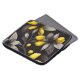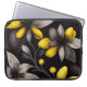 CAPA PARA NOTEBOOK PRETO COM FLORES AMARELO E CINZA