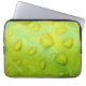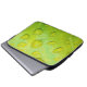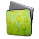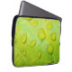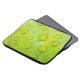 Esta Bolsa de laptop de 13" apresenta uma fotografia abstrato original de ZoeSPEAK de gotas de chuva em uma folha. Na foto de close-up, vemos a textura e as veias da folha ampliadas nos contornos das gotículas de água. A folha verde amarela brilhante reflete o azul e o amarelo do céu e a luz solar.