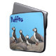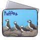 Puffins em repouso nas rochas. A Puffin do Atlântico (Fratercula arctica) se alimenta principalmente por mergulho na água. Criam-se em grandes colônias em penhascos costeiros ou ilhas offshore no Atlântico Norte. Os alfinetes derramaram as partes coloridas das suas contas após a época de reprodução, deixando um bico menor e mais aborrecido. Suas asas curtas são adaptadas para nadar com uma técnica voadora sob água. No ar, batem suas asas rapidamente (até 400 vezes por minuto) em um voo rápido, muitas vezes voando baixo sobre a superfície do oceano.