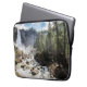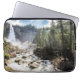 Esta foto caracteriza o inverno atrasado em Nevada que as quedas estão no fluxo completo e a água troveja fora da cara do penhasco e pega outra vez no rio merced enquanto passa rochas e abeto.