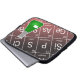 Esta bolsa de laptop com o tema químico apresenta um desenho animado de um Erlenmeyer, ou Conical Flask, contendo um misterioso produto químico verde. O fundo preto e vermelho apresenta uma parte da Mesa Periódica dos Elementos, incluindo símbolo, nome e número atômico!