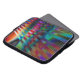 Arte abstrato digital parecida com um espectro de listras cromadas que irradiam sobre um fundo multicolorido, como raios de luz feitos de vidro.