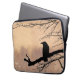 Uma silhueta do pássaro e ramificações tipo web ou crack. Pode ser corvo, corvo ou torre.