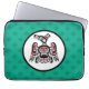 Mantenha seu MacBook Apple seguro nesta Bolsa de laptop Neoprene com um lindo Thunderbird Kaigani da British Columbia, Canadá. O fundo é verde-marinho.