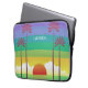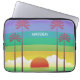 Modern colorful personalised laptop sleeve with retro style sunset and palm trees art.