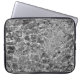A água fluvial corre sobre rochas indiscerníveis criando ondulações caóticas e padrões de luz refletida nesta fotografia a preto e branco. As linhas brancas oblongas e curvantes fluem em torno de rochas obscuras escuras sob a superfície para criar uma foto abstrato-relembrante do mármore. A foto de na moda foi tirada num rio perto de Seattle, Washington. Fotografia a 35 mm, a preto e branco. Copyright © 1993 Claire E. Skinner. Todos os direitos reservados.