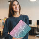 Capa Para Notebook Rosa claro de luxo brilhante Ombre Glitter