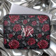 Capa Para Notebook Rosas de Borgonha com Fundo Preto Monograma