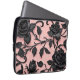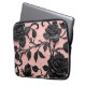 rosas pretos bonito com uma ilustração de fundo rosa numa bolsa de laptop. Na moda e diferente.