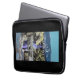 Uma pintura paisagem digital de Vermont cênico. Stowe Mountain sobe acima de Moss Glen Falls, com um céu azul claro como fundo. À medida que a água fria desce para ir abaixo de uma ponte coberta, ela acaba em Warren Falls. Há uma borda preta ao redor da trabalho de arte. Em uma fonte branca há, "Vermont", "Linda Rota 100". E você pode encontrar o ano de estado nas passagens da ponte, parecendo um 1791 gravado. Um peru fica atento à entrada da ponte. Imagem Copyright ©2023 Kimberly J Tilley.