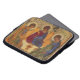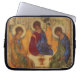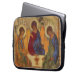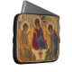 Antiquado Andrei Rublev trabalho de arte/ícone representando o Pai, o Filho e o Espírito Santo sentados numa mesa. As imagens parecem ter asas de anjo.
