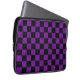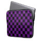 This moody laptop sleeve features a pattern of rustic checks, checkers that are distressed in purple and black.