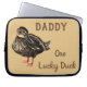 Este caso de laptop do tema pato, personalizado com texto, será um presente pensativo para o Dia de os pais. Eu criei este padrão de pato da imagem na minha pintura acrílica intitulada, Duck Lakeside.