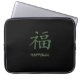 Saco verde do laptop do caráter chinês da felicidade. O símbolo chinês para a felicidade no verde. O presente perfeito para seu laptop favorito.