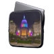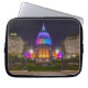 Uma fotografia noturna captura a prefeitura de São Francisco banhada em cores vibrantes do arco-íris, simbolizando inclusividade e orgulho. A cúpula icônica, uma característica arquitetônica proeminente, é iluminada em uma matiz roxa suave. A fachada do prédio é enfeitada com um espectro de cores, criando uma exibição visual impressionante.