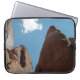 Em Arches National Park perto de Moab, Utah, os topos de um casal de barbatanas impressionantes de arenito criam uma borda balançada ao céu azul acima. O sol atinge as barbatanas à esquerda, deixando-as à direita na sombra. Enquadrada pelo V principal criado pelas formações do Entrada Sandstone, uma nuvem de bola de algodão toca o topo da imagem. 35 mm, fotografia a cores. Copyright © 2004 Claire E. Skinner. Todos os direitos reservados.