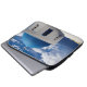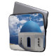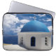 Bolsa de laptop com Santorini, foto de Grécia com céu azul e nuvens brancas.