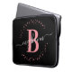 Rapariga, moderna, moderna, elegante, cor-de-rosa e preto-branco, script de nome inicial de monograma personalizado bolsa de laptop monograma personalizada. Apresentando um monograma inicial e um script de nome feminino em uma letra de caligrafia com letras de mão, com caudas intermitentes e um círculo pontilhado ao redor do seu monograma. Presente feminino perfeito para irmã, mãe, namorada, aniversário, casamento, chá de panela, doce festa de aniversário 16, moda, donos de salões de beleza, ou qualquer pessoa que ama o estilo feminino bonito e moderno.