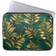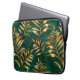 Seamless pattern of gold, jewelry, shiny fern branches and leaves on green, woodland, textured background. Golden fern.