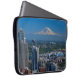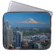 Linda bolsa de laptop de 15 polegadas que mostra uma fotografia de Seattle com o Monte Rainier ao fundo.