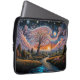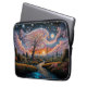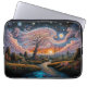 Esta imagem representa uma paisagem vibrante e surreal que funde elementos da natureza com imagens cósmicas. No centro está uma árvore majestosa com seus ramos esticados no céu que transita para uma galáxia estrelada. O fundo apresenta um pôr do sol com tons radiantes de laranja e amarelo se misturando no céu escurecido adornado com planetas e nebulosas giratórias. Um rio sereno percorre o primeiro plano refletindo a exibição cósmica acima enquanto é flanqueado por colinas exuberantes e plantas floridas. A justaposição da tranquilidade terrestre e da maravilha celestial cria uma intrigante narrativa visual que é tanto embasadora quanto expansiva.