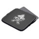 A chrome like pirate crossbones design on a black carbon fiber style background decor. A racy modern nautical gift.