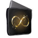 Símbolo infinito de joias Dourado com estrelas douradas sobre fundo preto. Design com estrela dourada.