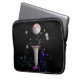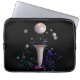Um objeto central semelhante a trompete rodeado por esferas coloridas e estrias é colocado sobre um fundo preto. O arranjo dá uma sensação de dispersão flutuante ou cósmica.