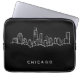 Características deste design um esboço tirado mão da cidade da skyline de Chicago em um fundo escuro.