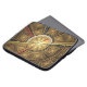 Uma imagem fractal vermelha, marrom e amarela. A imagem se assemelha ao interior de uma cúpula esculpida, talvez de um templo asiático.