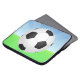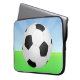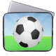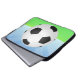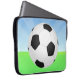 Esfera de futebol do estilo hexágono preto e branco num campo verde de grama num dia ensolarado com céu azul, e raios de luz ao fundo. Que clima agradável para jogar fora do jogo de futebol ou campo de verão de futebol.